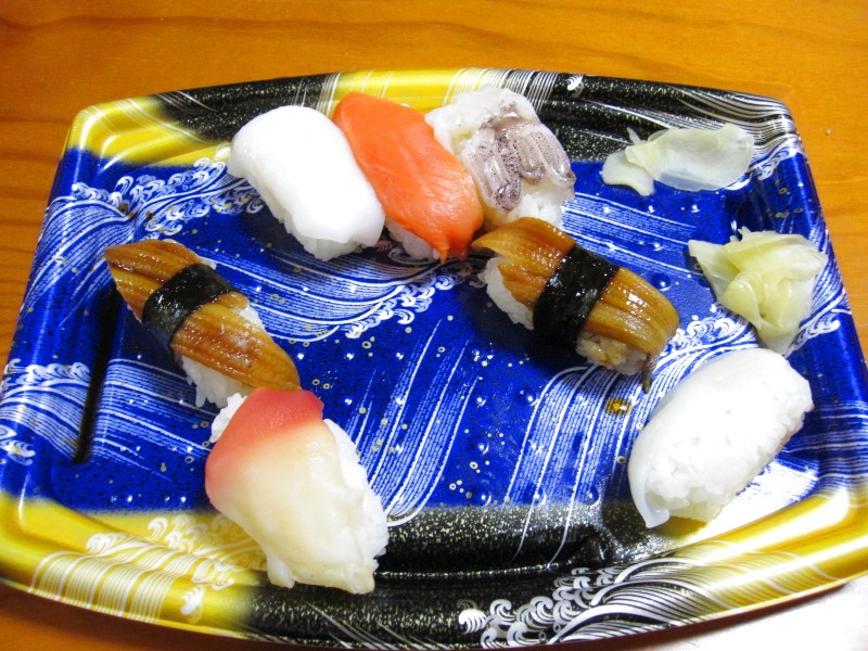 ↑夜ご飯。下からもらった、食べかけお寿司。