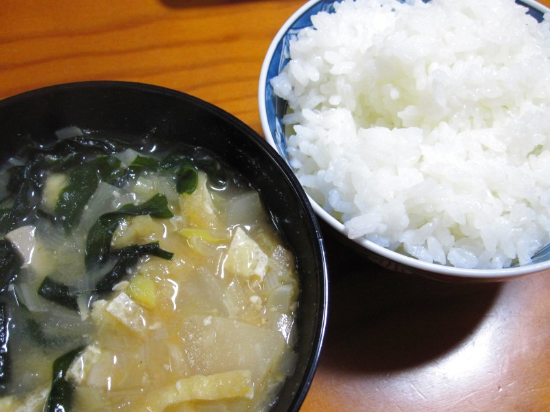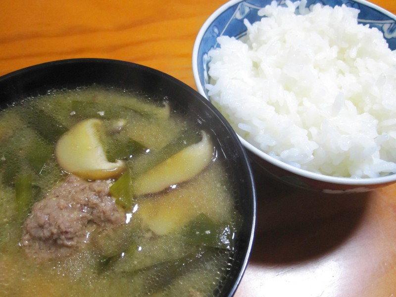 ↑夜ご飯。肉団子入り味噌汁・ご飯。