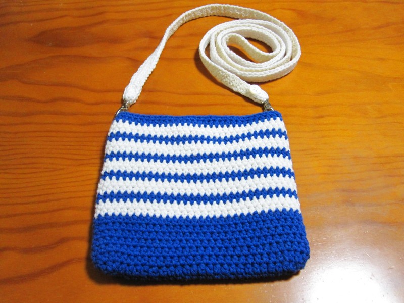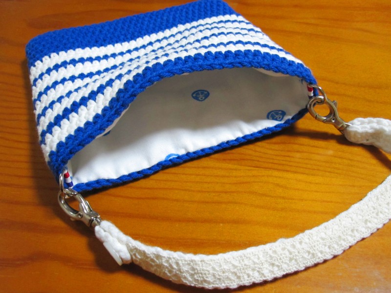 夏に向けて、マリンテイストな感じのバッグを編もうかなと思って。