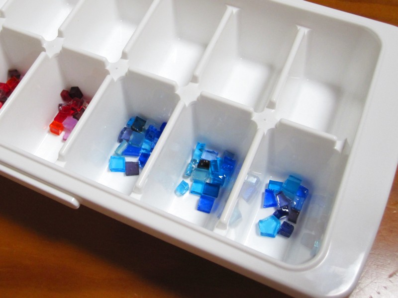 このガラスのかけらをいっぱい作ってあって、使い道が無かった。