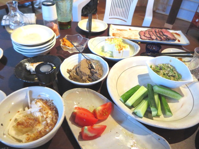 夫の人のローストビーフと、はすのレバーパテを持参した。
