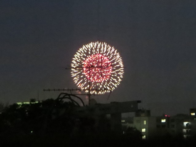 高く大きく打ち上がる花火は、けっこう良く見えた。