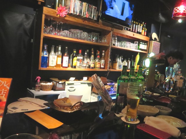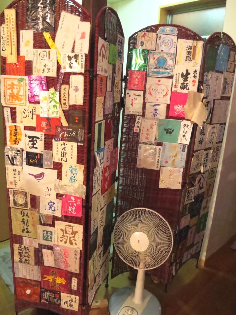 ↑ものすごい量のお酒のラベルが貼られたパーテーション。