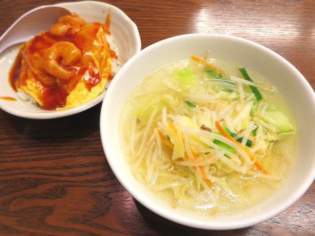 ↑夜ご飯。ミニ海老玉丼&ミニタンメンセット。