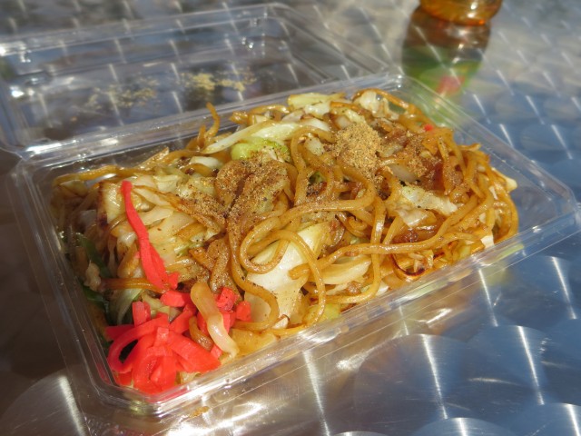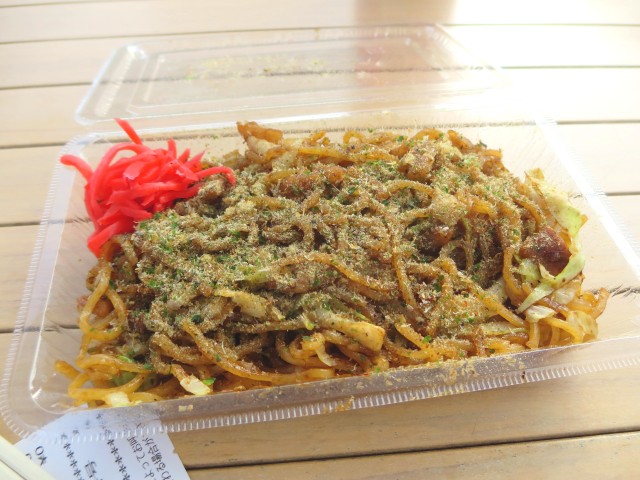 ↑外の売店で、富士宮焼きそばをゲット。朝ご飯~。