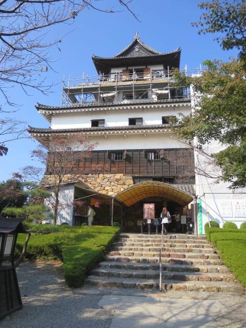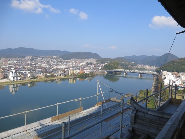↑天守最上階。外側の回廊には、低ーい手すりしかない。