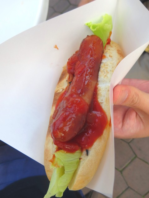↑夫の人が、ホットドッグっぽいのを買った。うまうま。