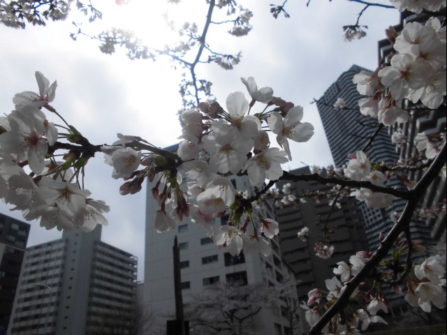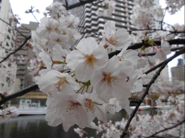 ↑曇っていて寒いけど、桜は満開。