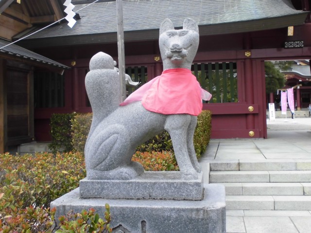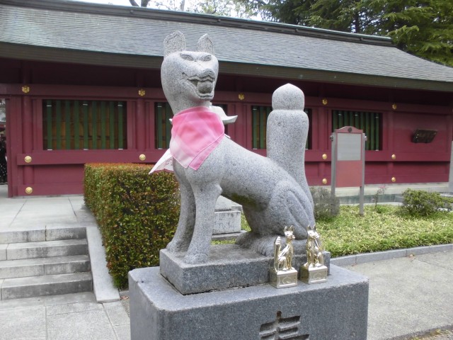 ↑裏側の入口にいた、狛犬…じゃない、狛キツネ?