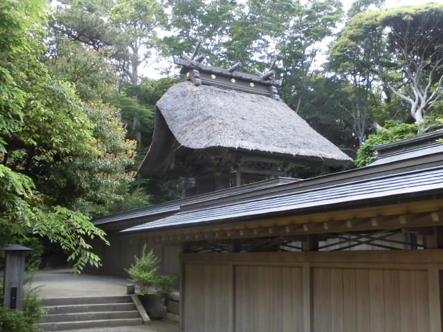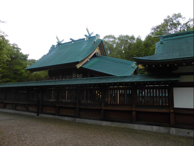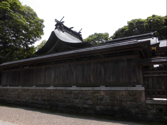 ↑本殿。拝殿脇から回る道があって、塀の外から少し見えた。