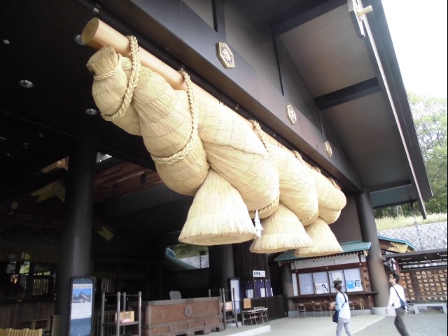 ↑拝殿へ戻って、しめ縄をじっくり眺める。みっちり、ぶっとい。