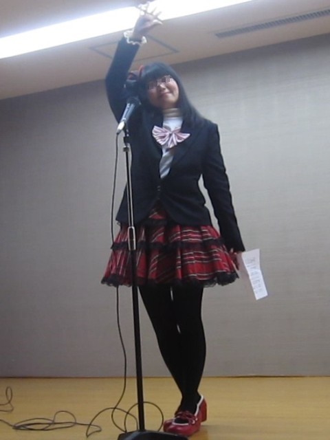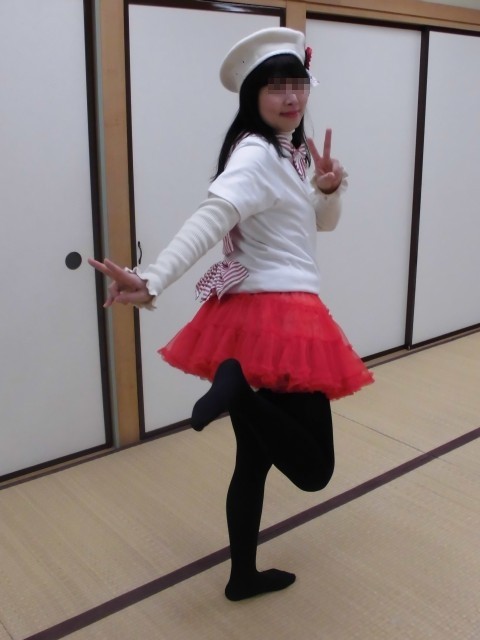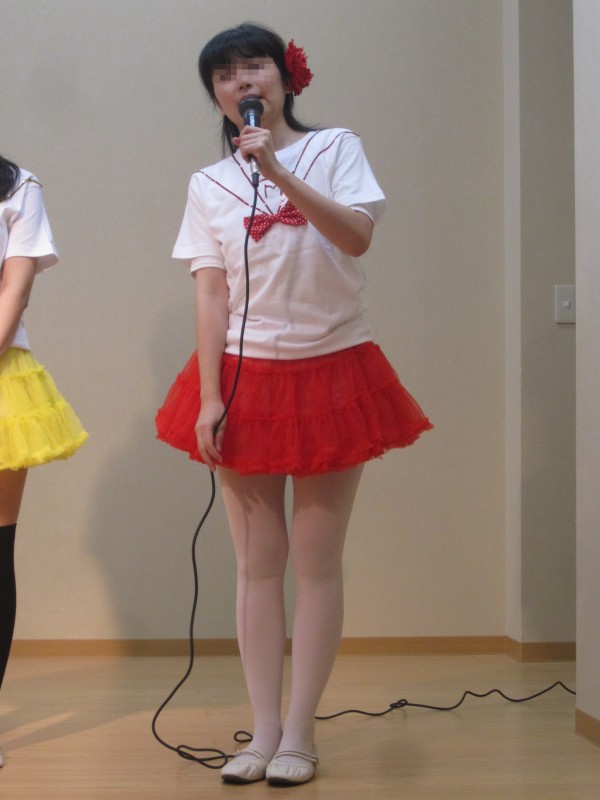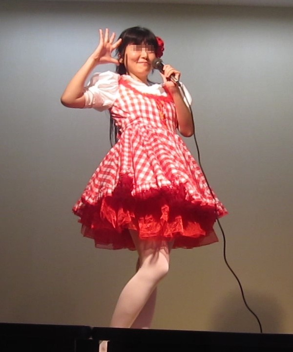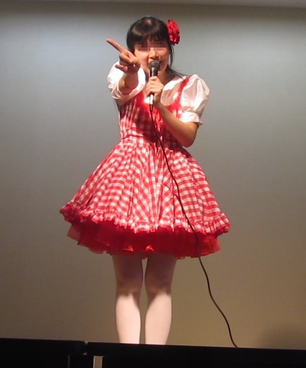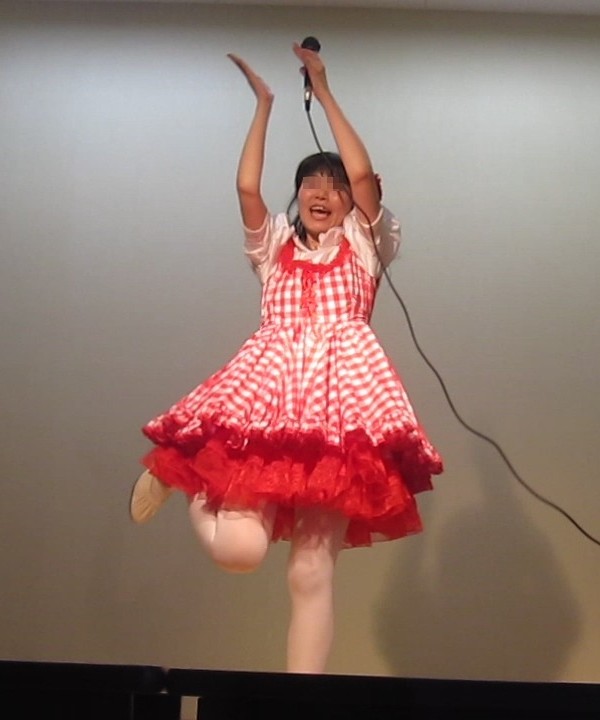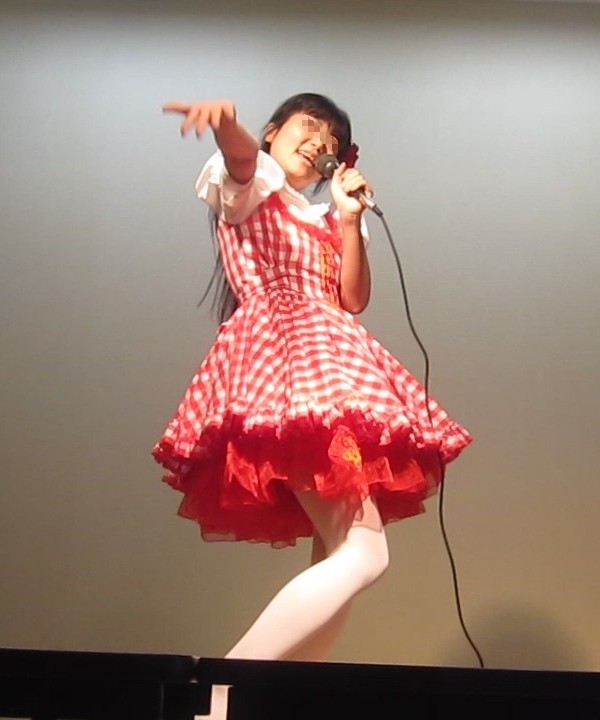 ↑かめちょ、赤いギンガムチェックの衣装がかわいい。