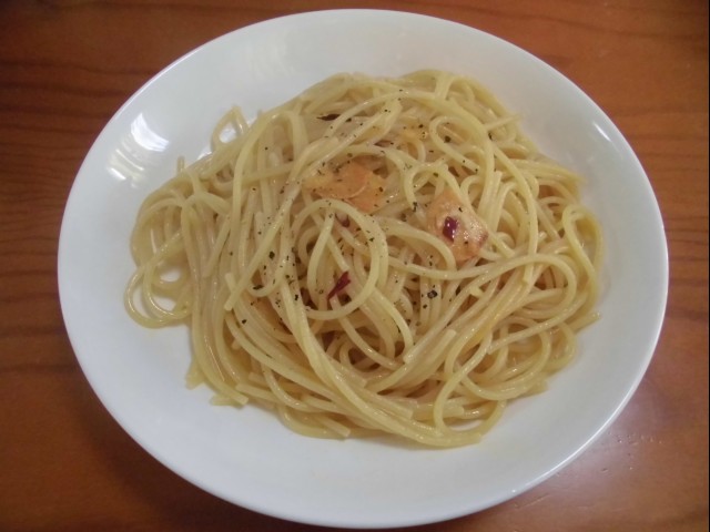 ↑ブランチ。夫の人特製・ペペロンチーノ。