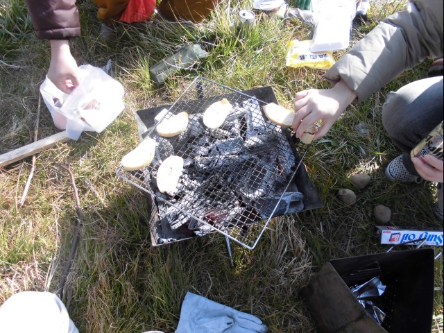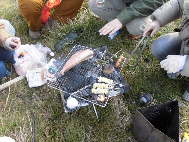 ↑いろいろ焼き。網の下、ホイル包みのジャガイモが美味だった。