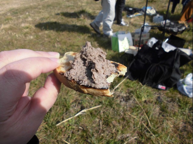 ↑パンをあぶって、レバーペーストを塗って食べたよ!