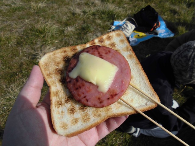 ↑あぶってサクサク食感のパンに、ハム&チーズ。うまうま。