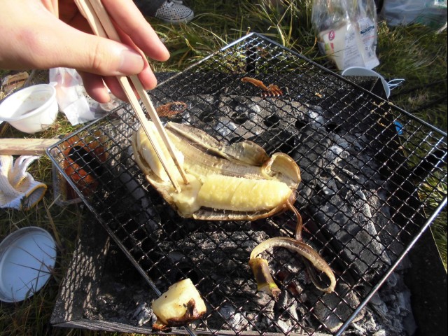 ↑いろいろ焼き。網の下、ホイル包みのジャガイモが美味だった。