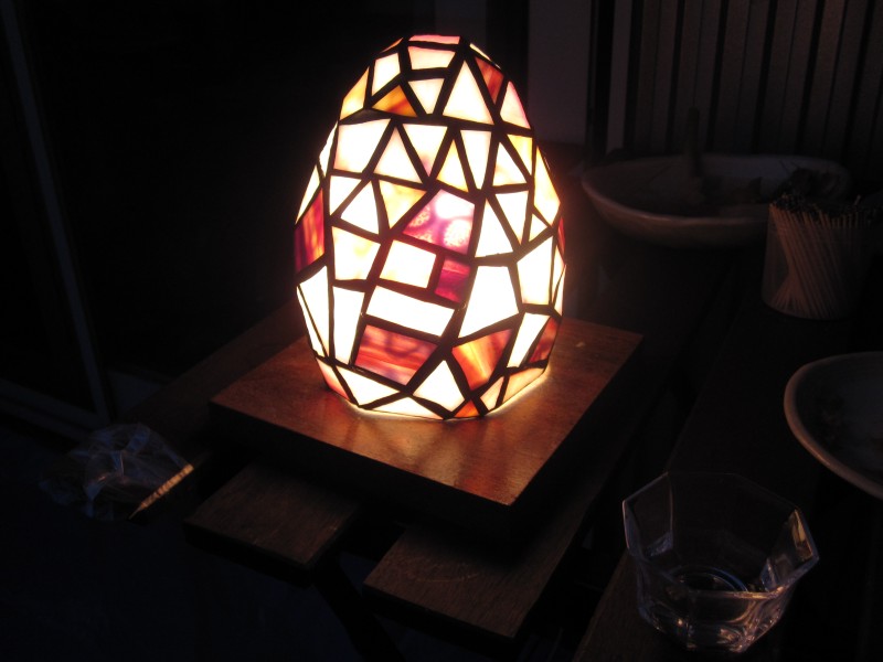 ↑暗くなって、はすが昔作ったランプを出してきてくれた。