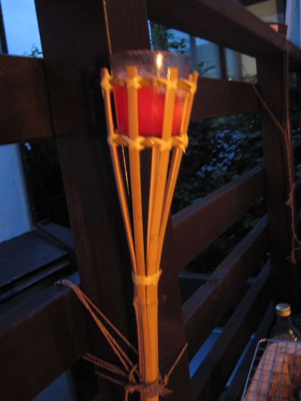 ↑野趣あふれるキャンドル立て。虫よけキャンドルだそうで。