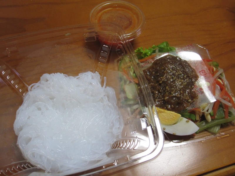 というわけで、夫の人はミニ冷やし中華、はすは春雨サラダを買った。