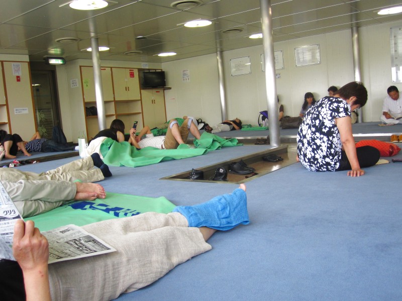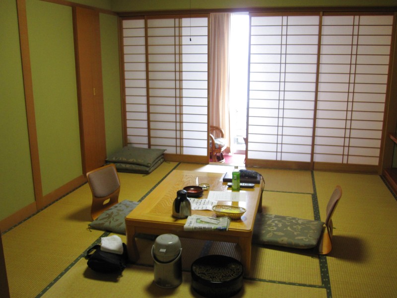夜ご飯後、夫の人は布団がいいというので、布団を敷いてもらった。