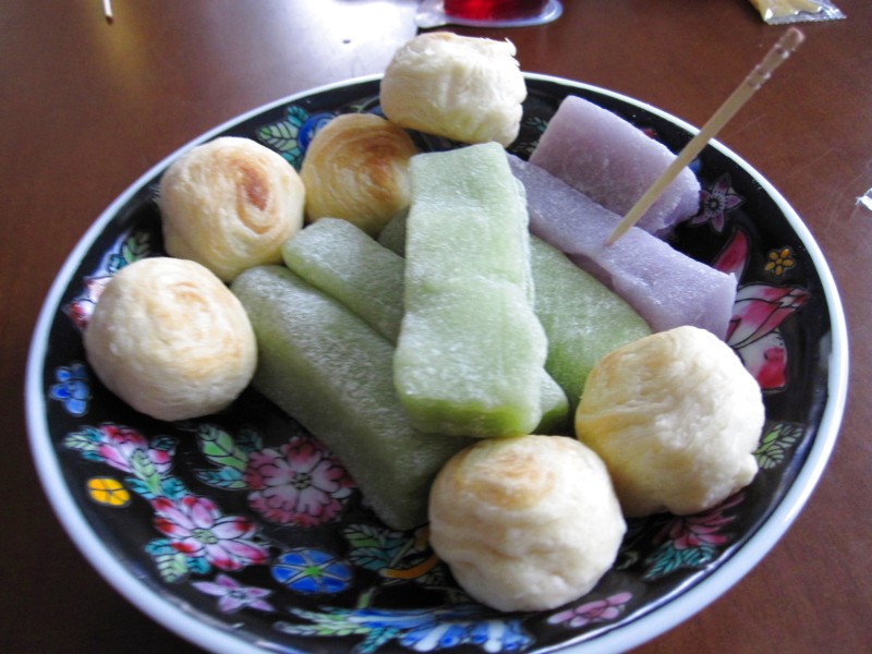 真ん中の緑のと紫の短冊形のは、もちもちした食感。