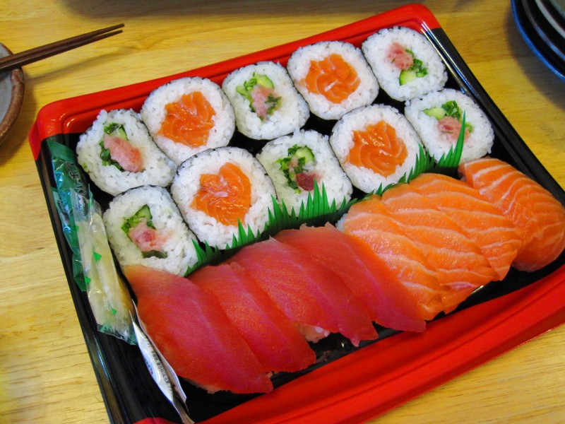 ↑お昼ご飯。マグロとサーモン寿司。うまうま。