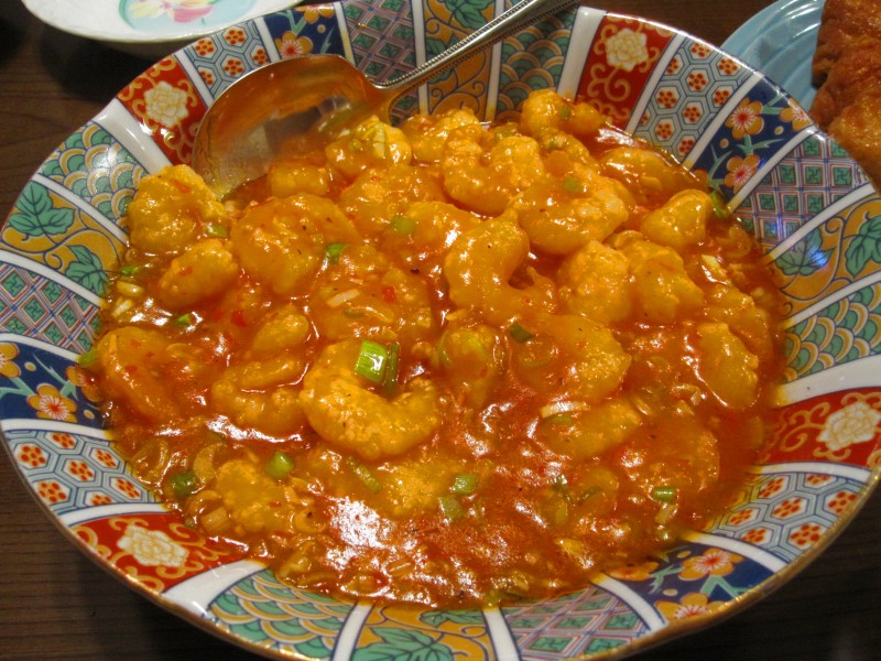 ↑エビチリ。お義父さんの好みの辛さなんだそうで。