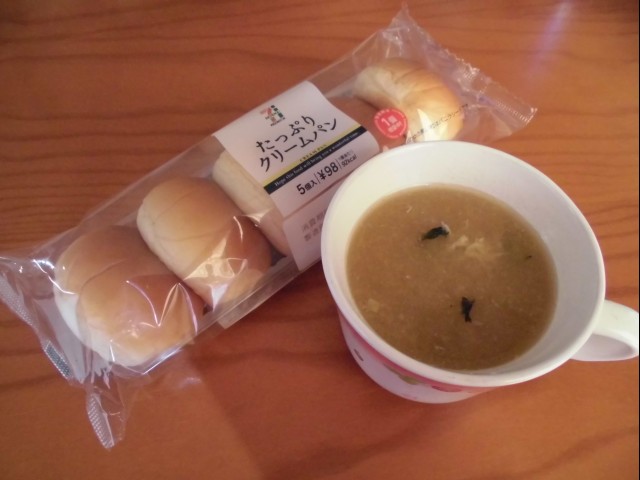 ↑昼ご飯。クリームパン・味噌汁。