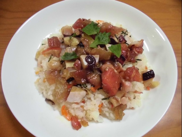漬けにした刺身をちりばめたら、超ごちそう~。うまかった~。