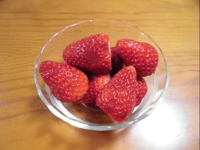 ↑デザート。いちご。よく熟れて甘くておいしかった。