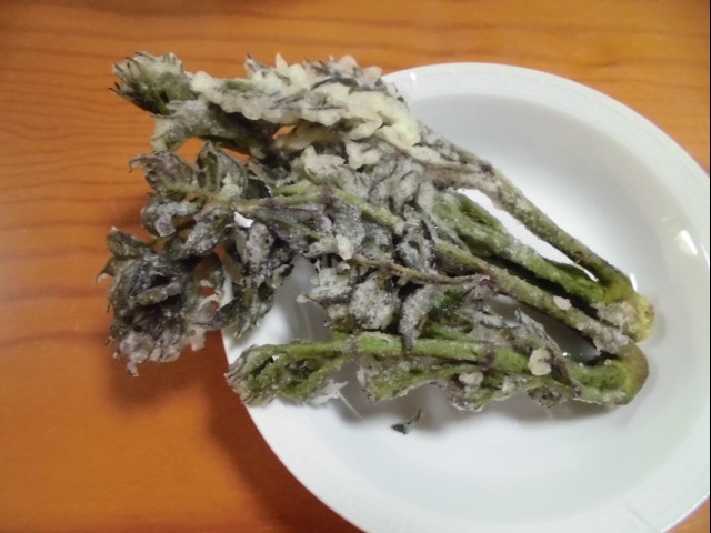 ↑ひき肉・ちくわ・アスパラ・ホウレン草の炒め物。