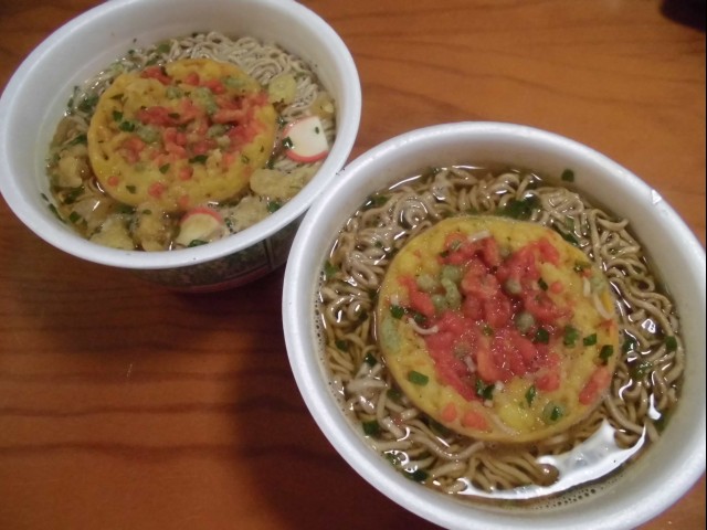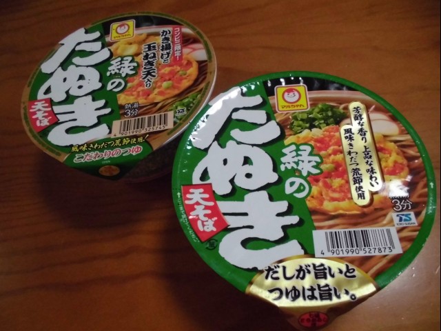 左奥のは、近所のコンビニで買った、関東の緑のたぬき。