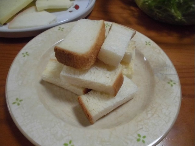 ↑食パンを小さく切ってトースト。