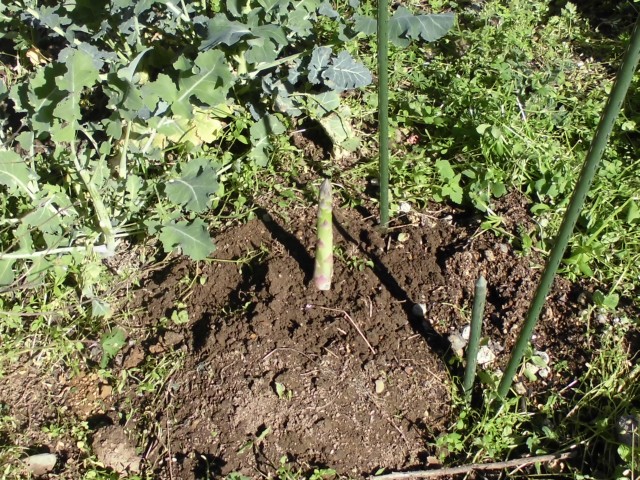 ↑庭に植え替えたアスパラちゃん。