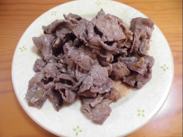 ↑牛肉を焼いたやつ。夫の人が焼く肉は、うまいなぁ。