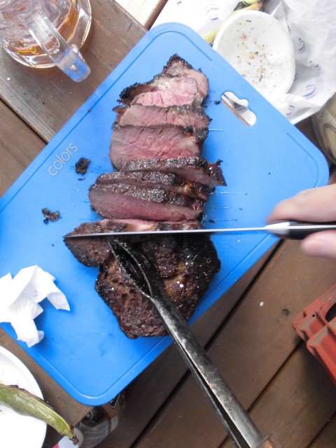 ↑肉の塊が焼けたのを、ローストビーフっぽくカット。
