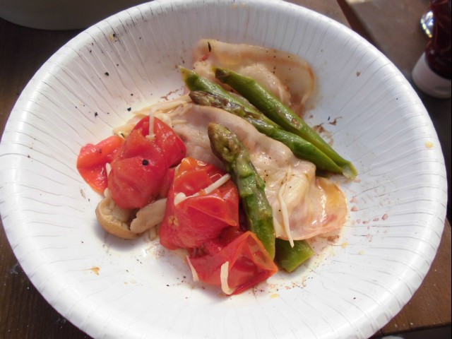 ↑中身は、ミニトマト・アスパラ・ベーコン・キノコいろいろ。