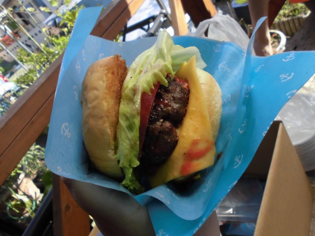 後からお義父さんが来たので、お義父さんにもハンバーガーを作る。