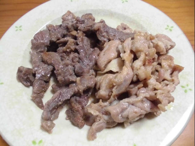 ↑ちょっとずつ残っていた肉を焼いたやつ。