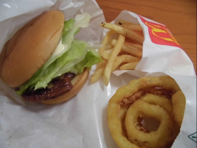 ↑モスの照り焼きチキンバーガーと、マックのポテト。