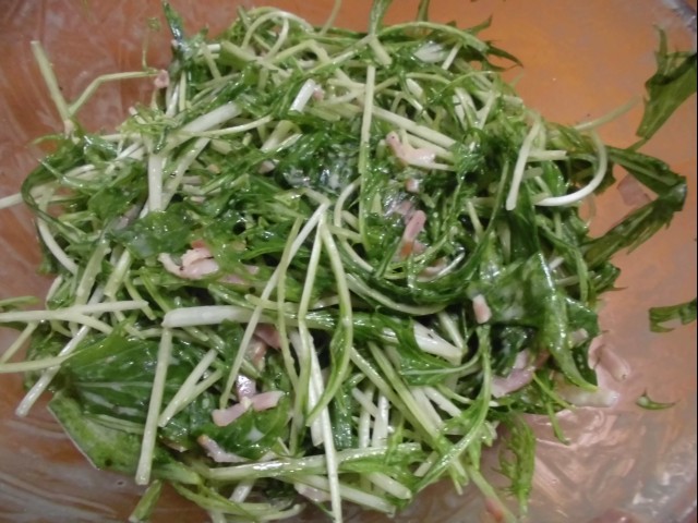 ↑水菜ベーコンサラダ。
