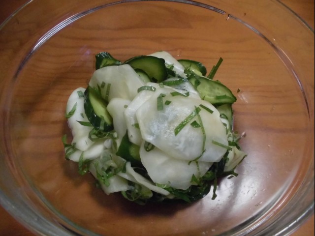 ↑かぶキュウリ大葉サラダ。