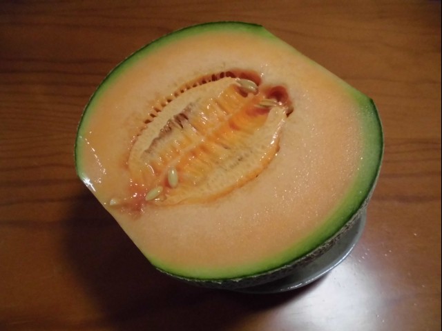↑下からもらったメロン。豪快に半割りで。皮の近くまで甘い。