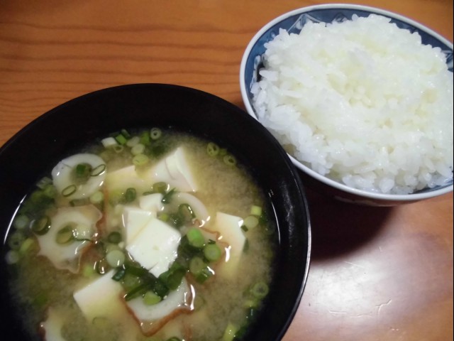 ↑昼ご飯。長芋キュウリ千切りサラダ・味噌汁・ご飯。
