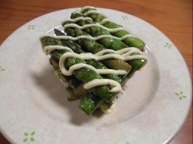 ↑夫の人が、薪のように並べて重ねてくれた。はすマヨかけ係。