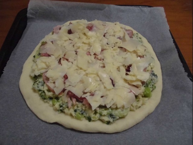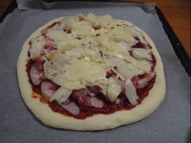 ↑ピザ焼く前。その2。ホワイトソースピザ。