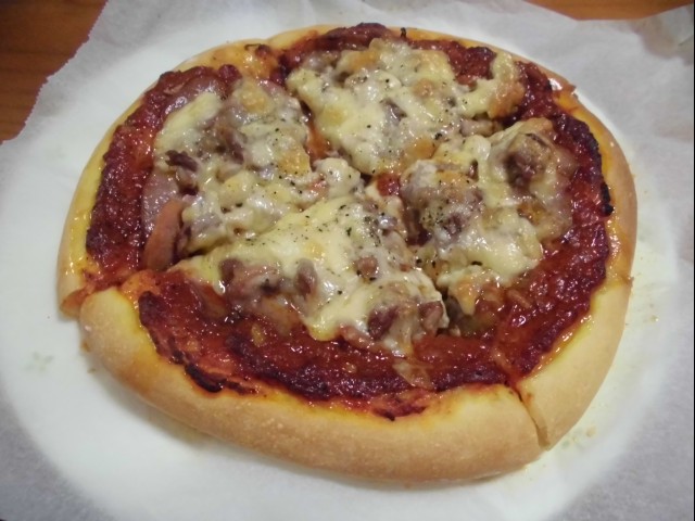 今日は、パンピザを作ることにした。