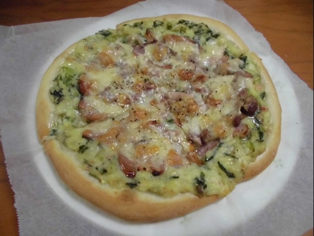 ↑ホワイトソースピザも焼けたー。