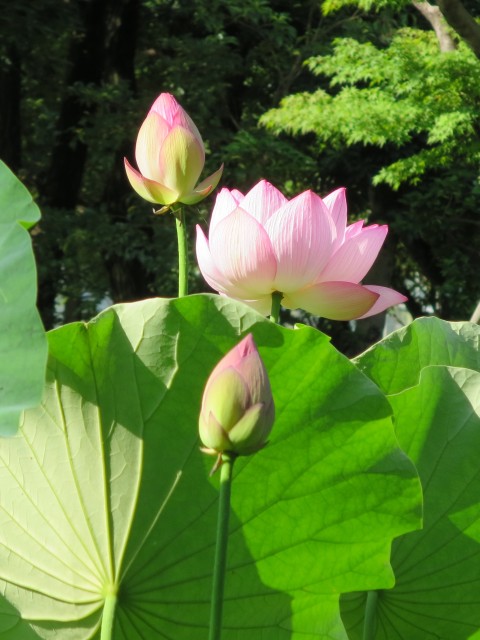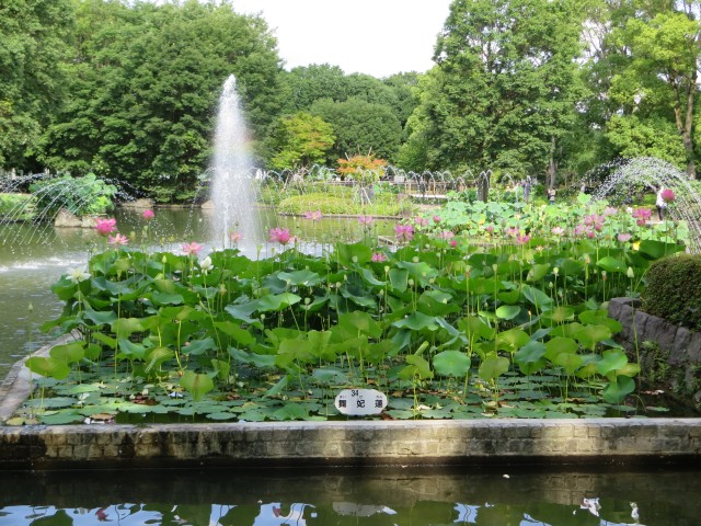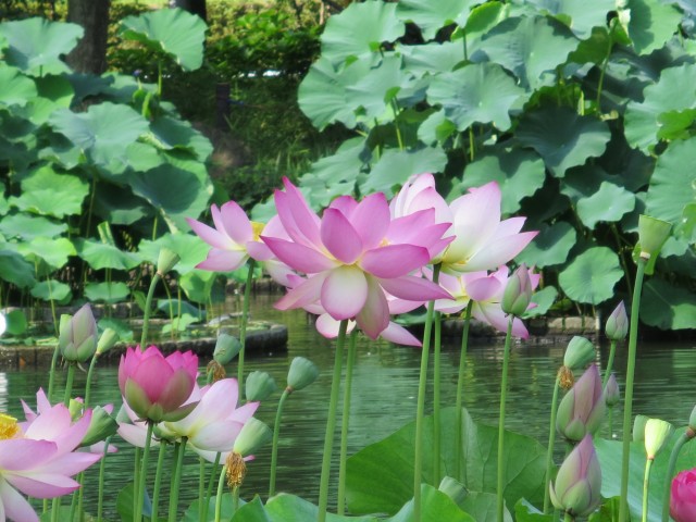 ↑ハスが咲く池の様子。いろんな種類のハスを見られた。